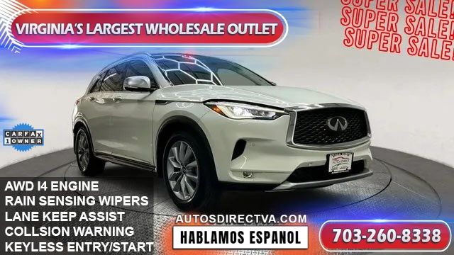 2021 INFINITI QX50 ESSENTIAL - AWD 2.0L 4 CYL TURBO GAS CVT * NON-SMOKER * PREMIUM SYNTHETIC - HIGH VALUE OPTIONS * ADAPTIVE CRUISE CONTROL * BACK-UP CAMERA * BLIND SPOT MONITOR * BLUETOOTH CONNECTION * CLIMATE CONTROL * FOG LAMPS * HEATED FRONT SEAT * HEATED STEERING WHEEL * INTEGRATED TURN SIGNAL MIRRORS * KEYLESS START * LANE DEPARTURE WARNING * LANE KEEPING ASSIST * LEATHER SEATS * MULTI-ZONE AIR CONDITIONING * NAVIGATION SYSTEM * PANORAMIC ROOF * POWER DRIVER SEAT * POWER LIFTGATE * POWER PASSENGER SEAT * PREMIUM SYNTHETIC SEATS * PRIVACY GLASS * RAIN SENSING WIPERS * REAR PARKING AID * SATELLITE RADIO * SEAT MEMORY * SMART DEVICE INTEGRATION * SUN/MOONROOF * TIRE PRESSURE MONITOR * WIFI HOTSPOT *