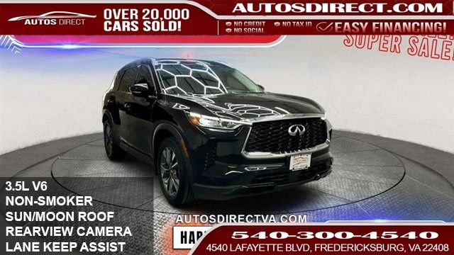 2023 INFINITI QX60 LUXE - AWD 3.5L 6 CYL GAS AUTOMATIC * NON-SMOKER * LEATHER - HIGH VALUE OPTIONS * 3RD ROW SEAT * ADAPTIVE CRUISE CONTROL * BACK-UP CAMERA * BLIND SPOT MONITOR * BLUETOOTH CONNECTION * CLIMATE CONTROL * COOLED FRONT SEAT * CROSS-TRAFFIC ALERT * HEADS-UP DISPLAY * HEATED FRONT SEAT * HEATED STEERING WHEEL * INTEGRATED TURN SIGNAL MIRRORS * KEYLESS START * LANE DEPARTURE WARNING * LANE KEEPING ASSIST * LEATHER SEATS * MULTI-ZONE AIR CONDITIONING * NAVIGATION SYSTEM * PANORAMIC ROOF * POWER DRIVER SEAT * POWER LIFTGATE * POWER PASSENGER SEAT * PREMIUM SOUND SYSTEM * PRIVACY GLASS * RAIN SENSING WIPERS * REAR AIR CONDITIONING * REAR PARKING AID * SATELLITE RADIO * SEAT MEMORY * SMART DEVICE INTEGRATION * SUN/MOONROOF * TIRE PRESSURE MONITOR * WIFI HOTSPOT *